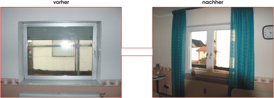 Auch bei diesem Projekt war eine genaue Vorplanung wichtig. Wir haben dem Kunden aufgezeigt, welche Möglichkeiten es gibt, die bestmögliche Wärme-dämmung zu erzielen und das spätere Erscheinungsbild optimal an seine Vorstellungen anzupassen. Dazu gehörte auch die Verlegung des Rollladenkastens vom Rauminneren an die Außenseite des Mauerwerks, um so eine optimale Wärmedämmung zu erreichen und Wärmebrücken zu schließen. Wichtig war es dem Kunden, dass man den Rollladenkasten später nicht, wie üblich, sehen würde und die vorherige Handbetätigung durch Gurtbänder entfällt. Neben den Hachwärmedämmenden Fenstern, welche für eine energetische Sanierung unabdingbar sind, lag das besondere Augenmerk des Kunden bei der neuen Haustür. Diese sollte zum Einen, zusätzlich zur Betätigung durch einen Schlüssel auch ohne diesen zu öffnen sein, zum Anderen eine sehr gute Isolierung aufweisen. Die kompetente Beratung, die Lösungsvorschläge und die technischen Qualifikationen haben letzendlich zur Auftragsvergabe an uns geführt.