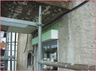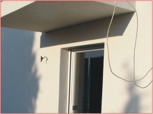 Der Rollladenkasten ist meist eine große Schwachstelle, durch die Wärme nach außen und Kälte nach innen dringen kann. Aus diesem Grund haben wir einen neuen, gedämmten Rollladenkasten an das vorhandene Mauerwerk angebracht und in das Wärmedämmverbundsystem integriert, um die so genannte „Wärmebrücke“ zu schließen. Anders als bei den herkömmlichen Vorsatzrollladen ist dieser Rollladenkasten nach den Verputzarbeiten nicht mehr zu sehen.