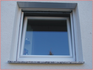 Nach Fertigstellung der Putzarbeiten ist der Rollladen-kasten nicht mehr zu sehen. Für Wartungsarbeiten braucht nur noch der untere Aluminium-Deckel geöffnet werden.